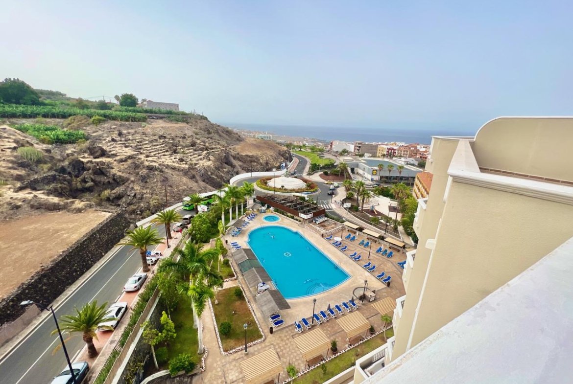 Se distribuyen en 2 dormitorios, 2 baños, uno de ellos en suite, cocina y un amplio y luminoso salón desde el que se accede a la gran terraza con vista parcial a los fantásticos Acantilados de Los Gigantes, en la que seguro podrás disfrutar con amigos y familia.